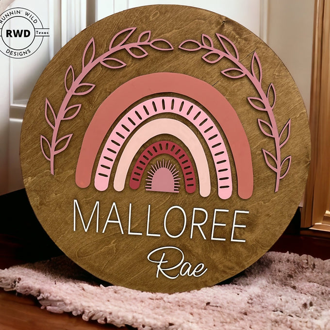 This 30” custom name sign features a handmade, round name sign. These beautiful